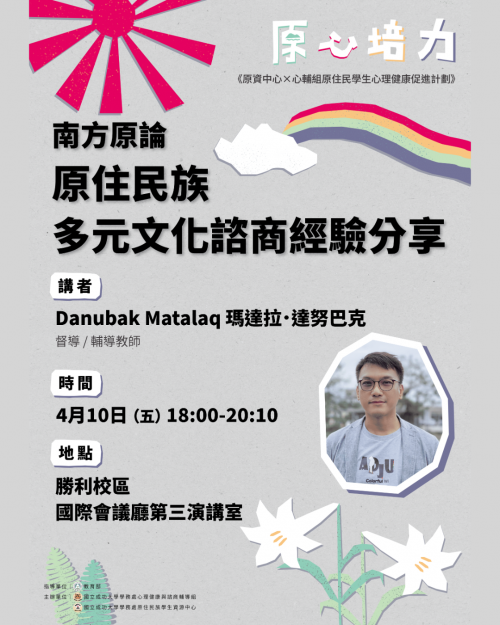 《原心培力×南方原論》 原住民族多元文化諮商經驗分享 |