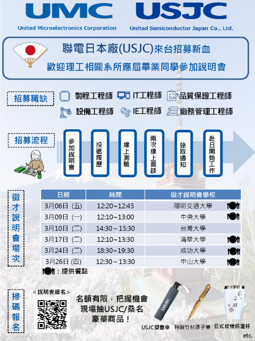 聯華電子股份有限公司2026企業徵才說明會(事先報名且出席說明會前50名提供餐點) |