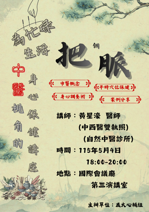 為忙碌的生活把個脈-中醫視角的身心保健講座 |
